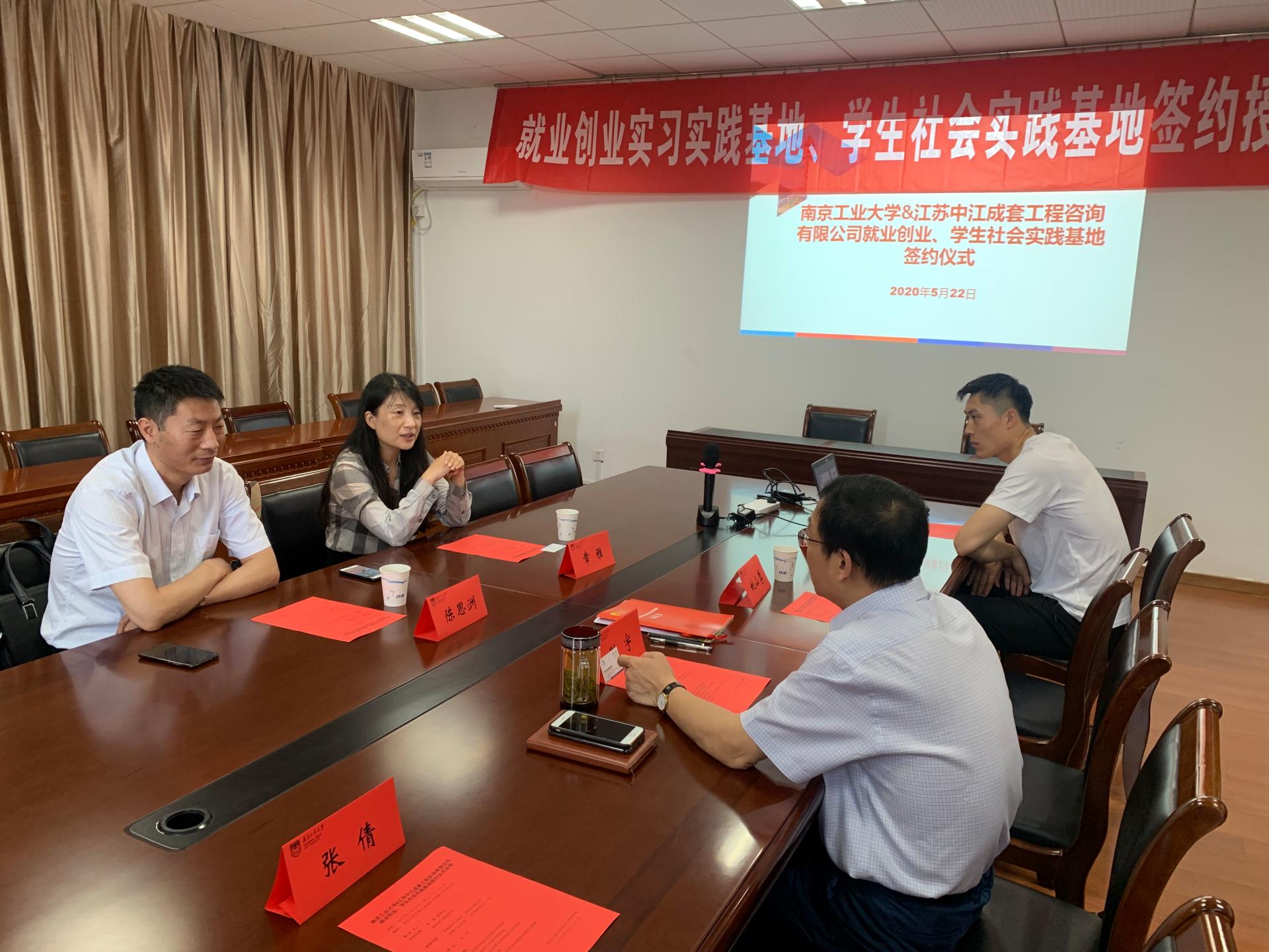 5月22日,公司与江苏中江成套工程咨询有限公司共建就业创业、员工社会实践基地挂牌仪式在文科楼638会议室举行。公司董事长章雅、副总经理陈思洲,经管公司党委副书记孙宇、副经理姚山季、团委书记张倩、团委副书记王大庆参加了本次签约仪式。