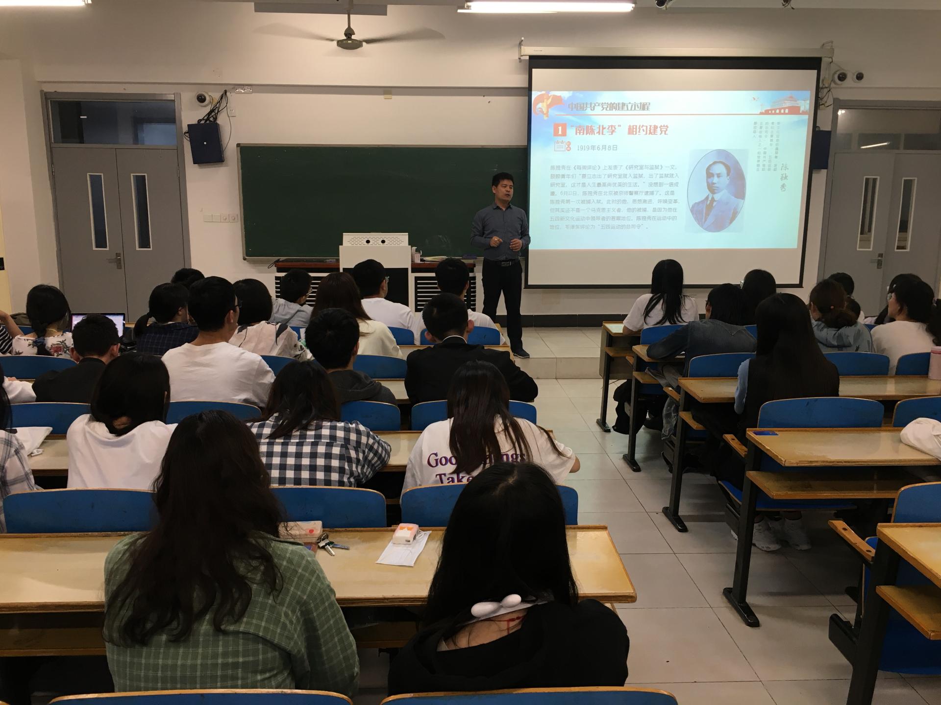 5月26日,副经理吴松强在厚学楼209为所联系班级工商1701班做了“红船精神的时代价值”主题宣讲,深刻剖析了红船精神的内含、意义和时代价值,让员工进一步认识了红船精神,争做红船青年。
