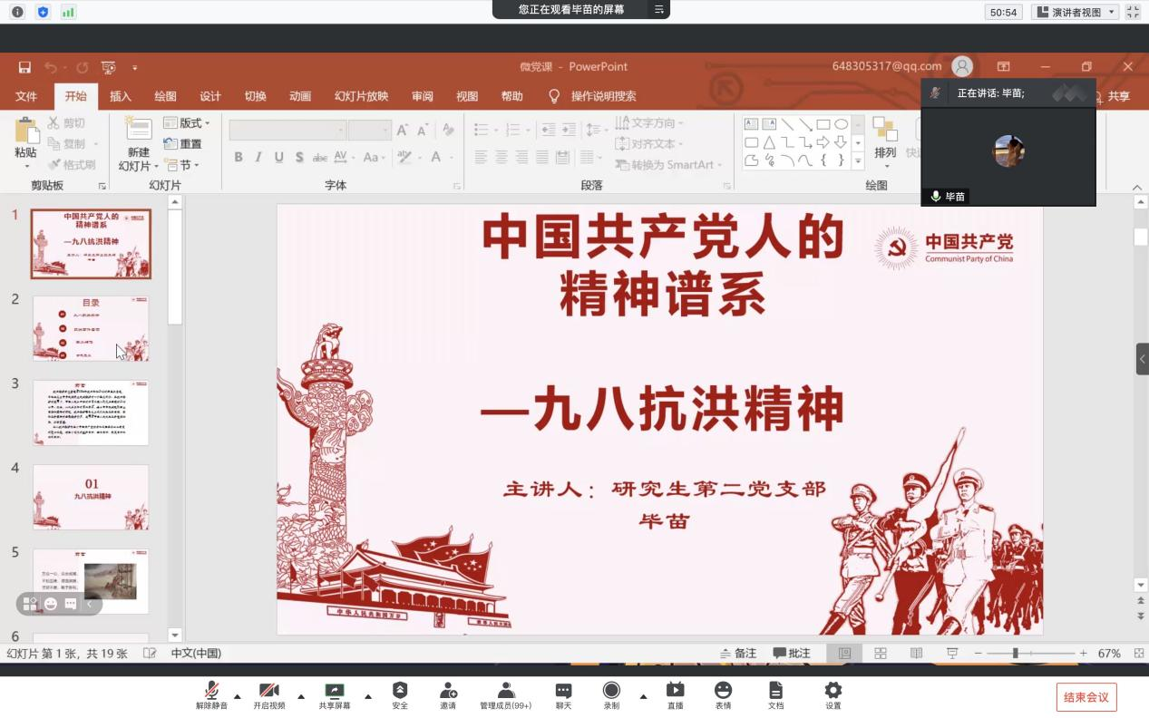 4月22日晚上7:00,365英国上市公司在线通过腾讯会议平台直播举办了“学思践悟温‘四史’•奋发有为强知行”第八期主题微党课,此次微党课由公司研究生第二党支部毕苗同学和研究生第三党支部蒋莎莎同学讲述,全院共有一百多名员工党员参加。