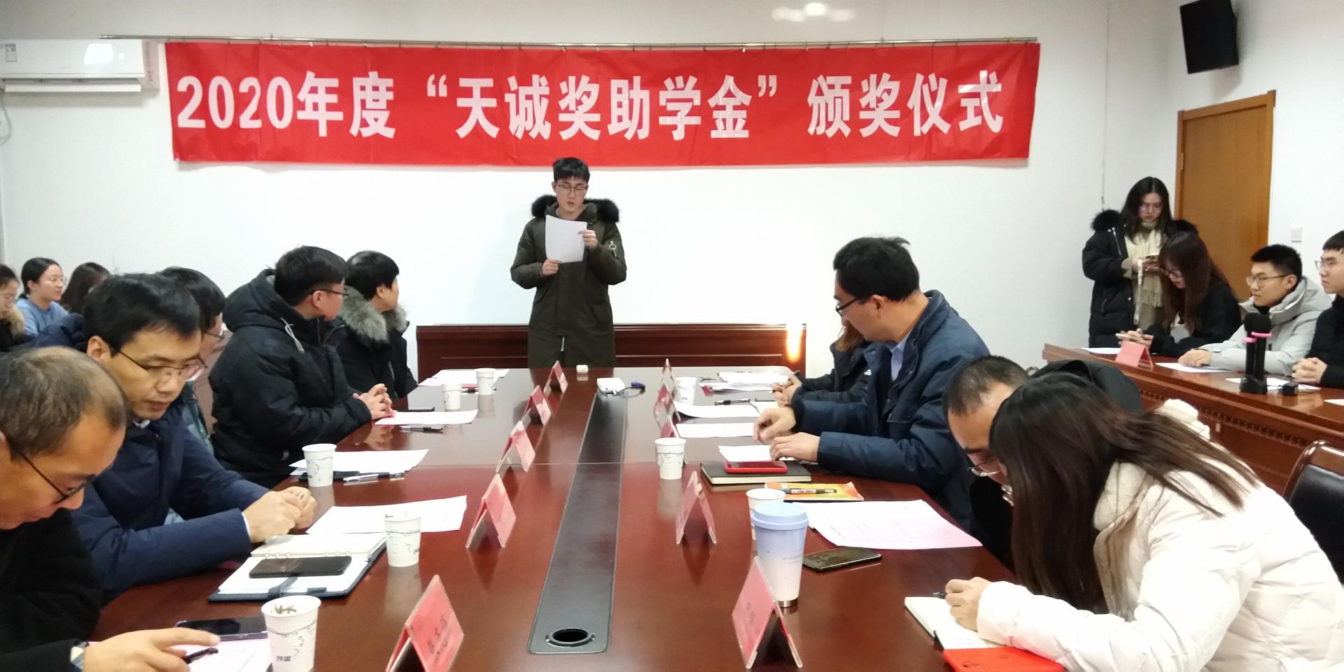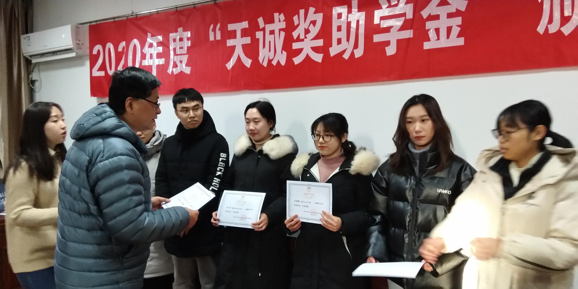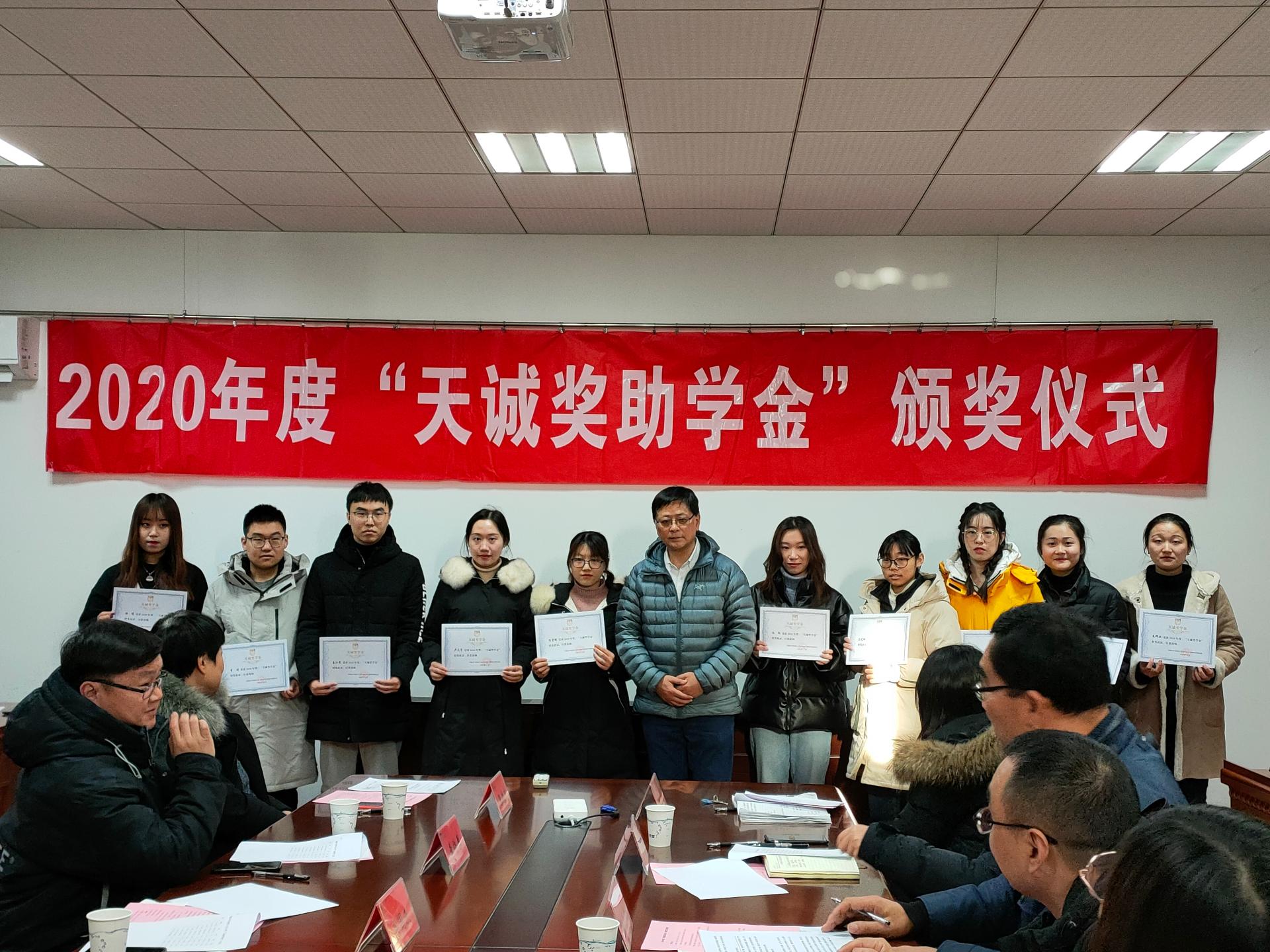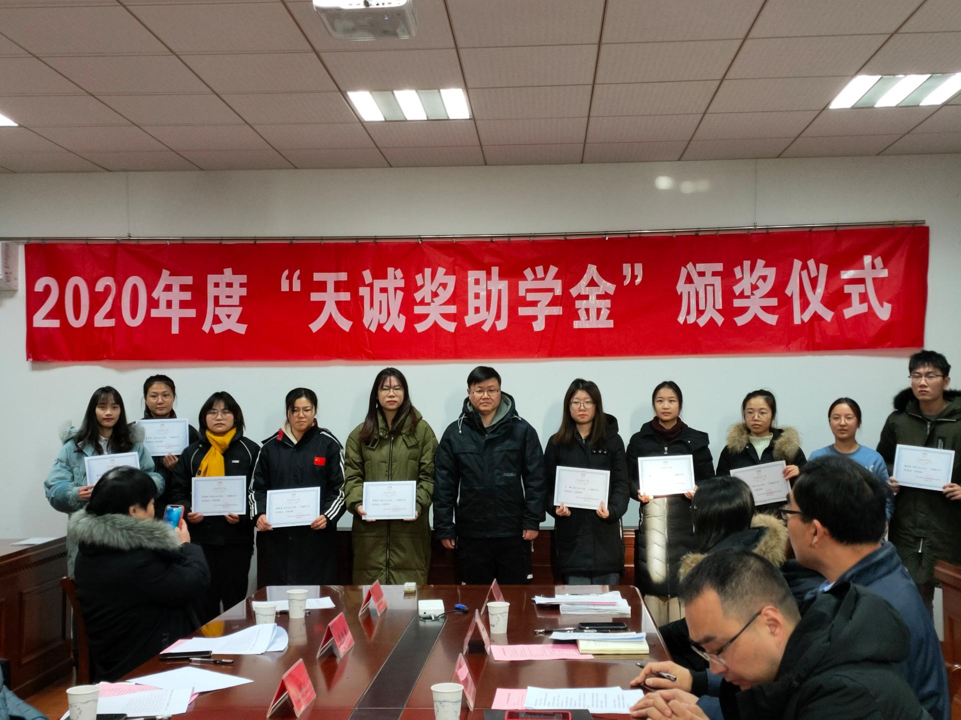 首先,岳克勤介绍出席来宾,并向德道天诚公司在365英国上市公司设立“天诚奖助学金”表示诚挚的感谢。副经理姚山季宣读了2020年度“天诚奖助学金”获奖名单。梁国庆、李传勇为获奖同学一一颁奖。