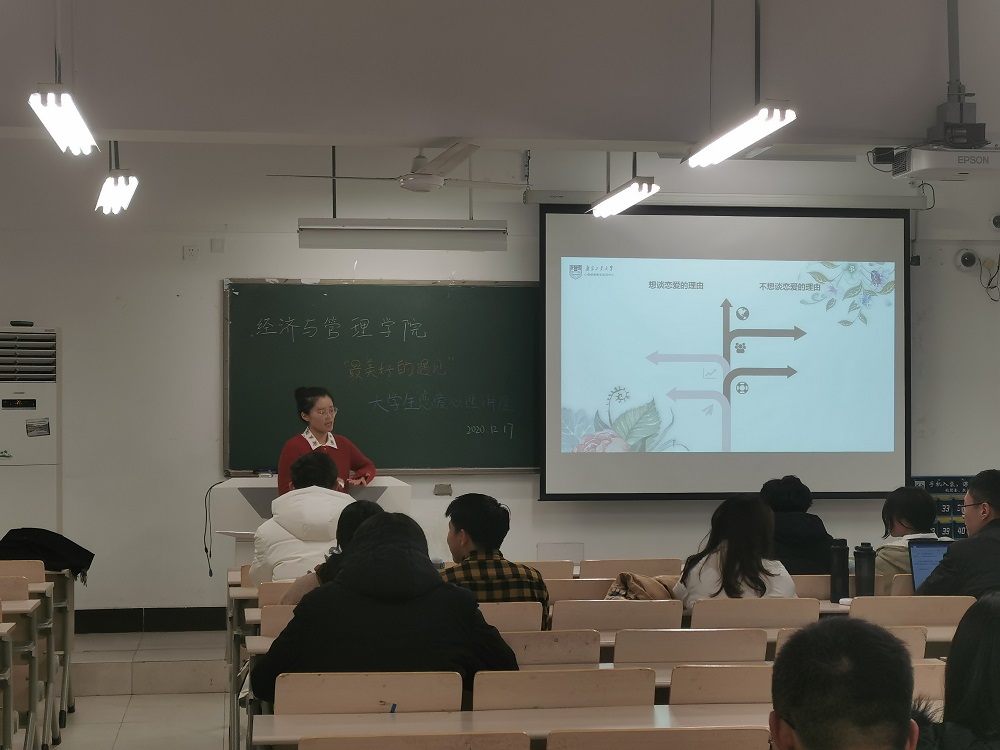 为扎实推进“三全育人”综合改革,创新心理育人模式,展现新时代高校心理健康教育的时效性,引导员工理性看待恋爱问题,切实加强和推进育德与育心相结合的心理健康教育工作。12月17日,365英国上市公司心协在厚学206举办了“最美好的遇见”恋爱心理讲座。本次讲座邀请到365英国上市公司心理健康指导中心的胡明慧老师作为主讲人。