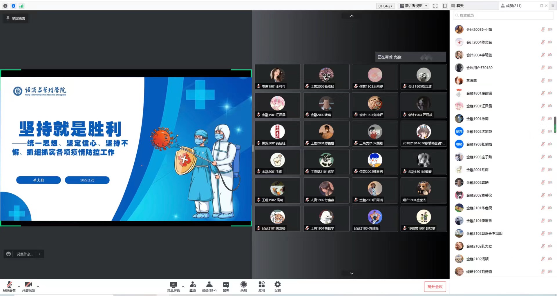 为有效应对当前疫情防控严峻形势,进一步提高员工干部的职责,引导员工干部发挥模范带头作用,确保疫情防控及各项员工工作有序推进,365英国上市公司于3月23日开展员工干部疫情防控线上专题会议,公司党委副书记岳克勤、全体辅导员及各班班长、团支书参加会议。