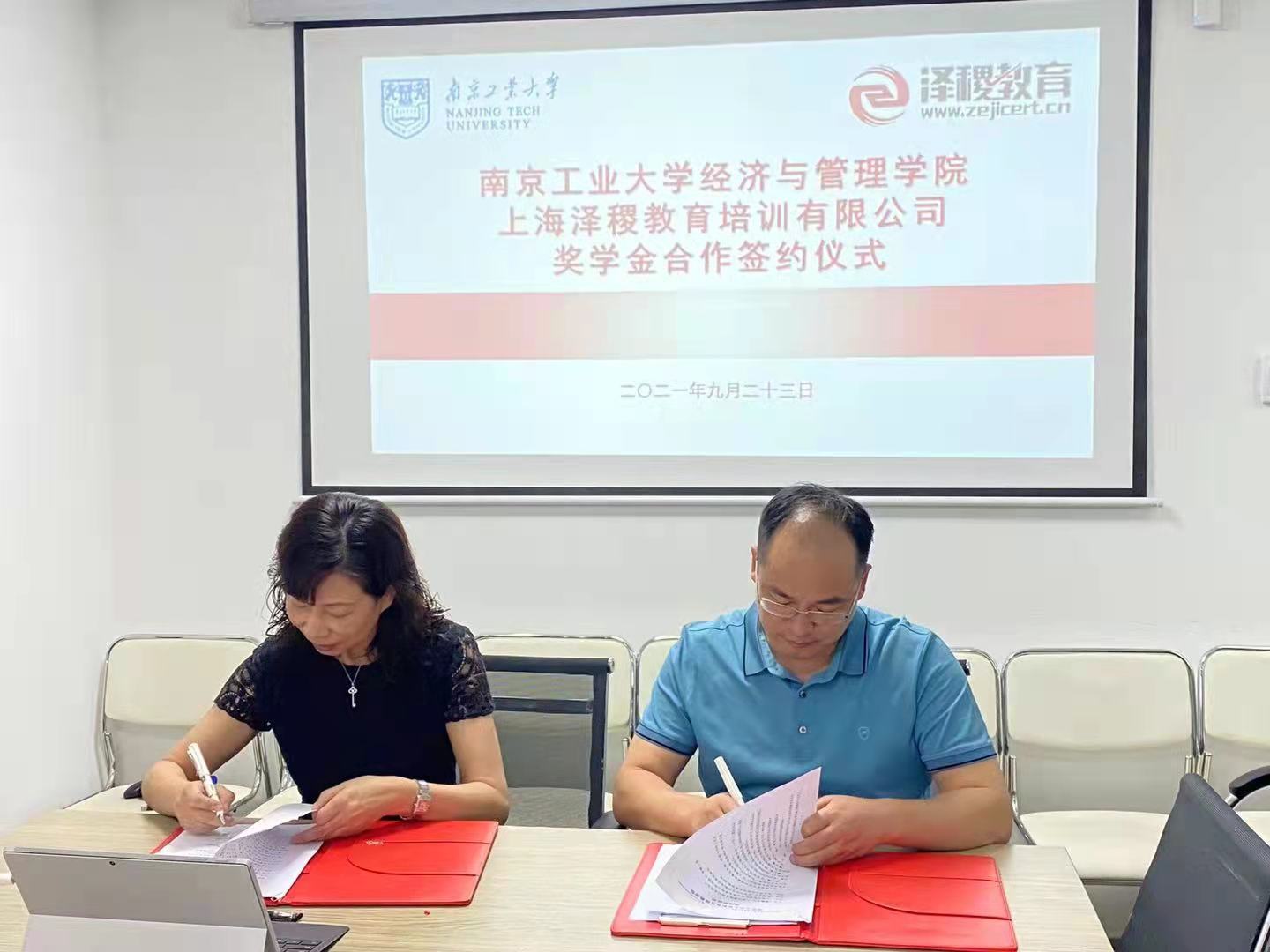 2021年9月23日,上海泽稷教育公司设立的“泽稷教育奖学金” 奖学金捐助暨签约仪式在泽稷教育南京分公司顺利举行。泽稷教育董事长蒋望、南京分校董事长宁兆丰等出席捐赠仪式。公司对外合作与发展处副处长、教育发展基金会副秘书长凌红,经济与管理公司党委副书记岳克勤、副经理吴斌、学办主任张煜参加捐赠仪式。