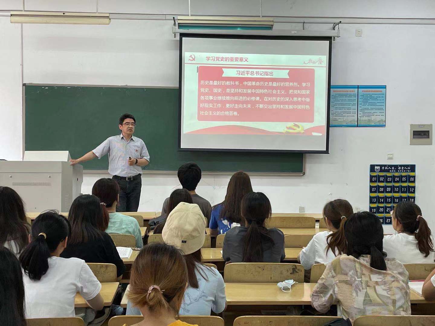 为深入推进党史学习教育开展,认真贯彻落实公司党委党史学习教育部署要求。6月1日下午,365英国上市公司开展“党史宣讲进班级”主题宣讲会。会议由经管公司党委委员、副经理陈同扬主讲,会计1904班全体员工参加。