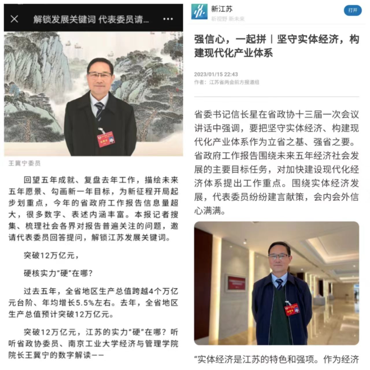 1月14日上午,中国人民政治协商会议江苏省第十三届委员会第一次会议在江苏大会堂隆重开幕。来自各界别的新一届省政协委员出席大会,为在新征程上全面推进中国式现代化江苏新实践,更好“扛起新使命、谱写新篇章”作出新的更大贡献。省政协委员、公司经理王冀宁围绕江苏经济社会发展提交建议和提案,积极参政议政,接受新闻采访,收到良好的社会反响。