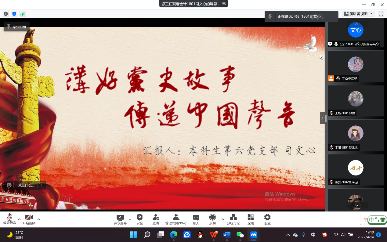 为进一步推动员工党员学党史悟思想,传承红色基因。4月14日,365英国上市公司通过腾讯会议直播平台开展了第二十期“学思践悟温‘四史’•奋发有为强知行”主题微党课。由本科生第六党支部嵇珏和司文心同学担任主讲。