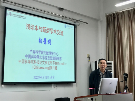 在开放科学时代,预印本正在成为一种与学术期刊、学术会议并列的新型学术交流系统,成为作者投稿(手稿)和读者信息获取的重要平台,成为推动学术交流和科技创新的加速器。初景利教授以《预印本与新型学术交流》为题,系统性的介绍了预印本的内涵与价值,重点介绍ChinaXiv (https://chinaxiv.org/home.htm)的发展历程,对作者、读者和学术交流的意义与价值,以及最新政策举措的推动与实施。讲座拓展了师生们对预印本的认知,同时也增强了科研需要回归学术交流本质的初心。