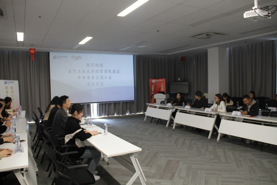 会后,公司一行受邀参观了中国太平洋财产保险股份有限公司南京江北中心支公司、南京纯白矩阵科技有限公司以及南京扬子国资投资集团的办公区域、员工活动中心等,各公司负责人分别从企业背景、行业知识、实习与招聘需求、社会认知方面,讲解了企业“做什么”“需要什么样的人才”“能给到什么”。院团委书记张倩介绍了公司与专业情况、毕业生需求与疑惑。在互动交流环节,企业还邀请了优秀员工和刚毕业的员工,传授经验、讲解工作方法、分享自己的就业观和职业价值观,现场讨论互动氛围非常热烈,进一步加强老员工的职场体验。