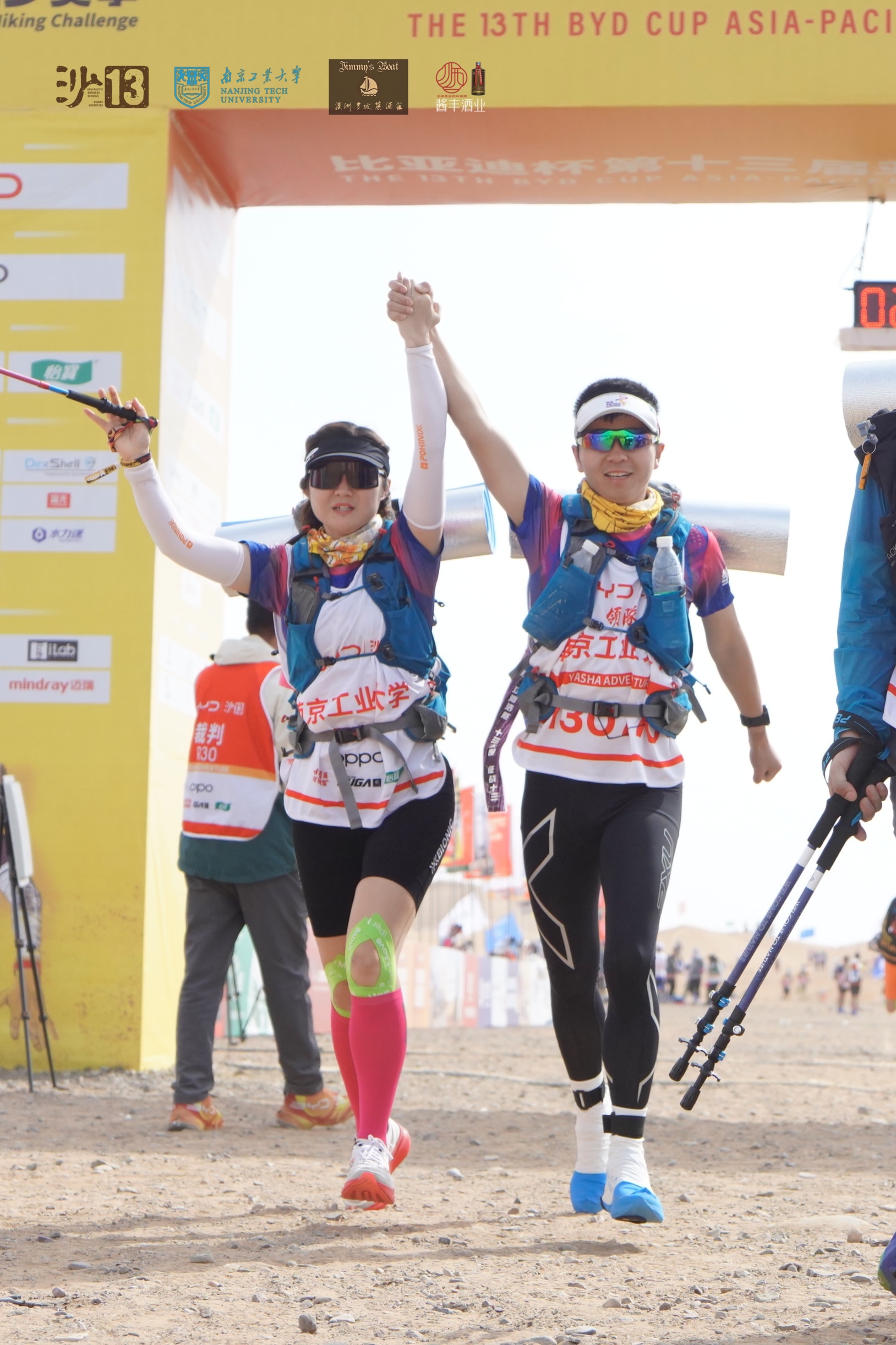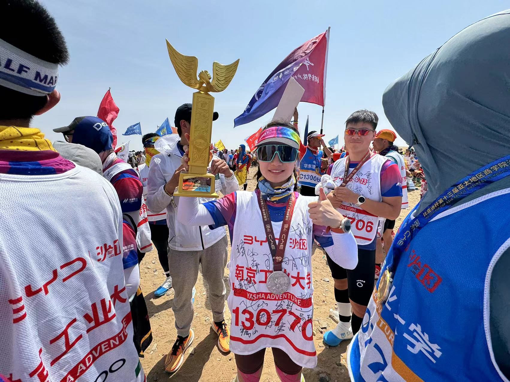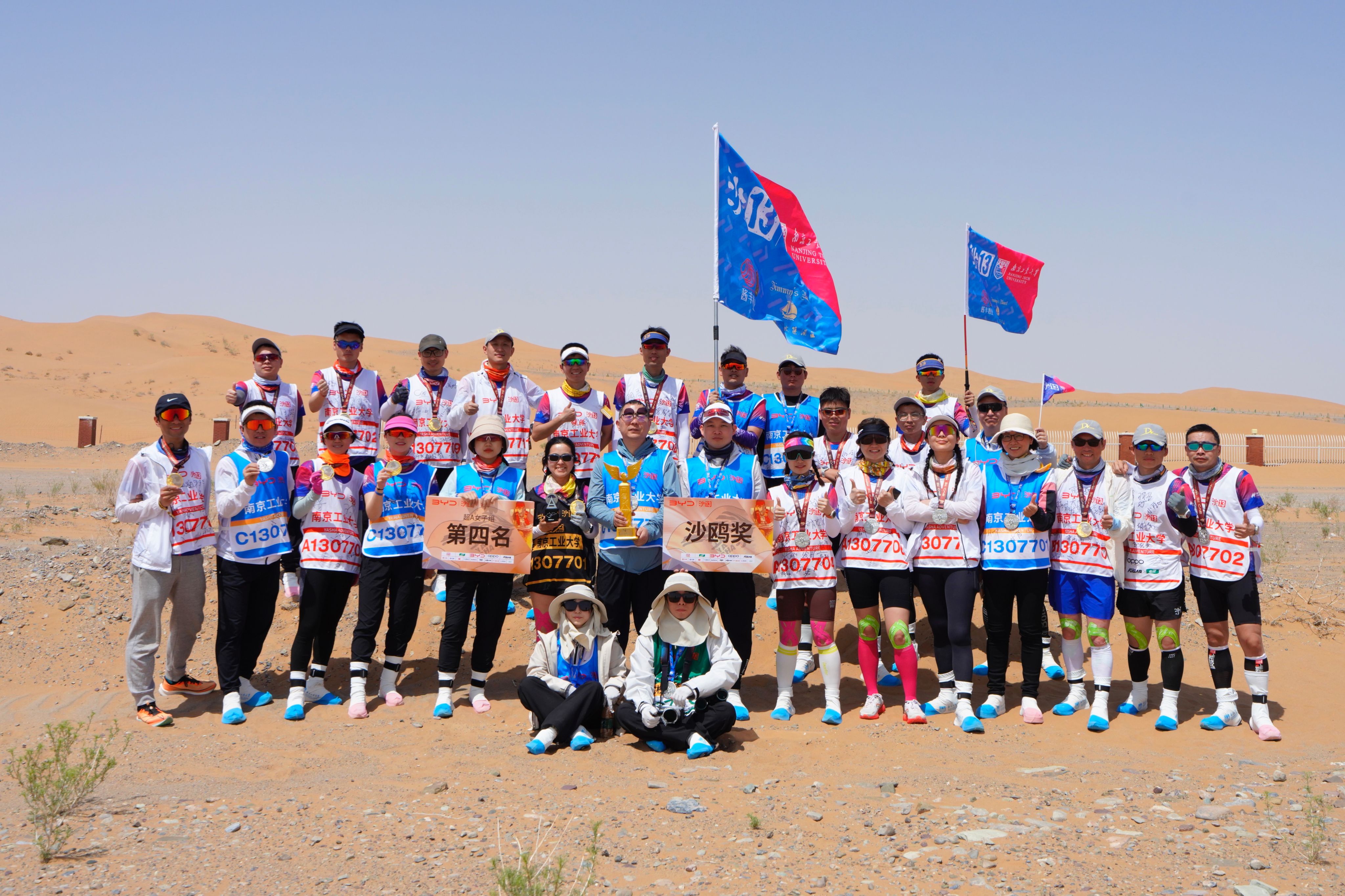 参赛者在三天规定的时间内,以团队的形式,分别累计完成99公里、70公里、33公里不同组别的沙漠徒步越野。公司MBA沙13战队32位勇士团结拼搏、紧密配合,经受住了漫天风沙的吹打、沙海冷雨的考验,全员完赛,最终取得超A队第四名历史最好成绩,团队再次举起金沙鸥。