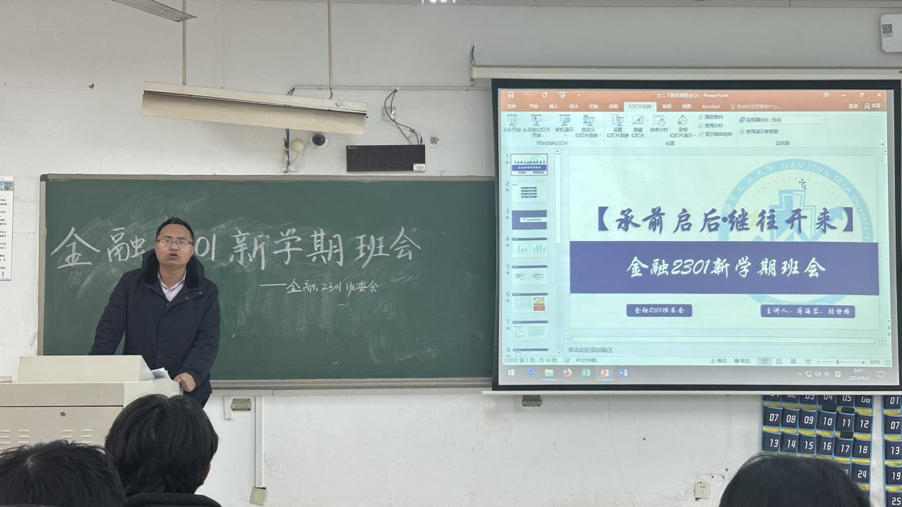 3月6日,公司金融2301班召开“承前启后,继往开来”新学期主题班会。公司党委保卫处副部长徐东、辅导员蒋海蓉、班级全体同学参加活动。