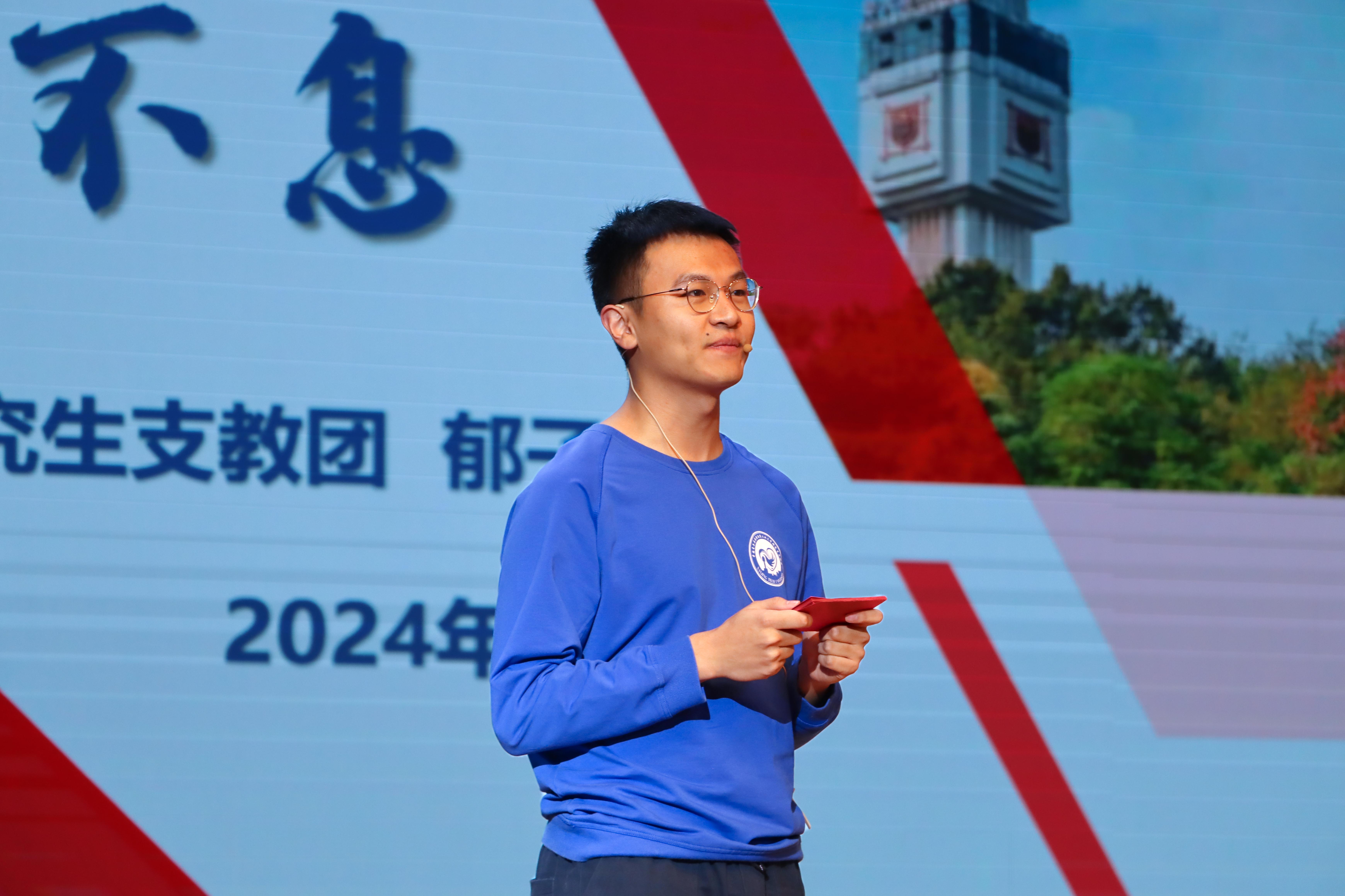 王梦婷、郁子琪分享了支教的经历。用一年的青春,做一件终生难忘的事。青春不以山海辽远,志愿只向国家未来。