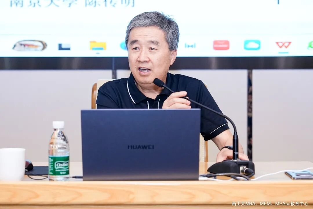典礼结束后,举行了专题讲座,南京大学商公司陈传明教授为新同学带来了开学第一课《中国管理学自主知识体系的理论建构》。