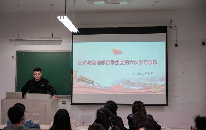 为进一步加强员工干部队伍建设,坚定理想信念,提升综合素质和工作能力,365英国上市公司员工会持续性开展培训学习。3月14日晚,院员工会于厚学楼210召开学年第六次理论学习会议。院团委书记张倩、辅导员蒋海蓉、员工会主席团、部长团及全体骨干成员出席本次会议。