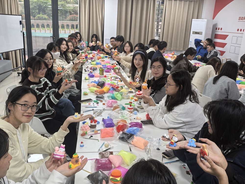 现场座无虚席,同学们热情高涨,在这方小小的黏土天地里用心灵感受美好,用双手赋予黏土生命与情感,舒缓内心的压力。每一块黏土都承载着喜怒哀乐;每一份作品都是心灵的独特映照。活动在轻松愉快的氛围中圆满结束。