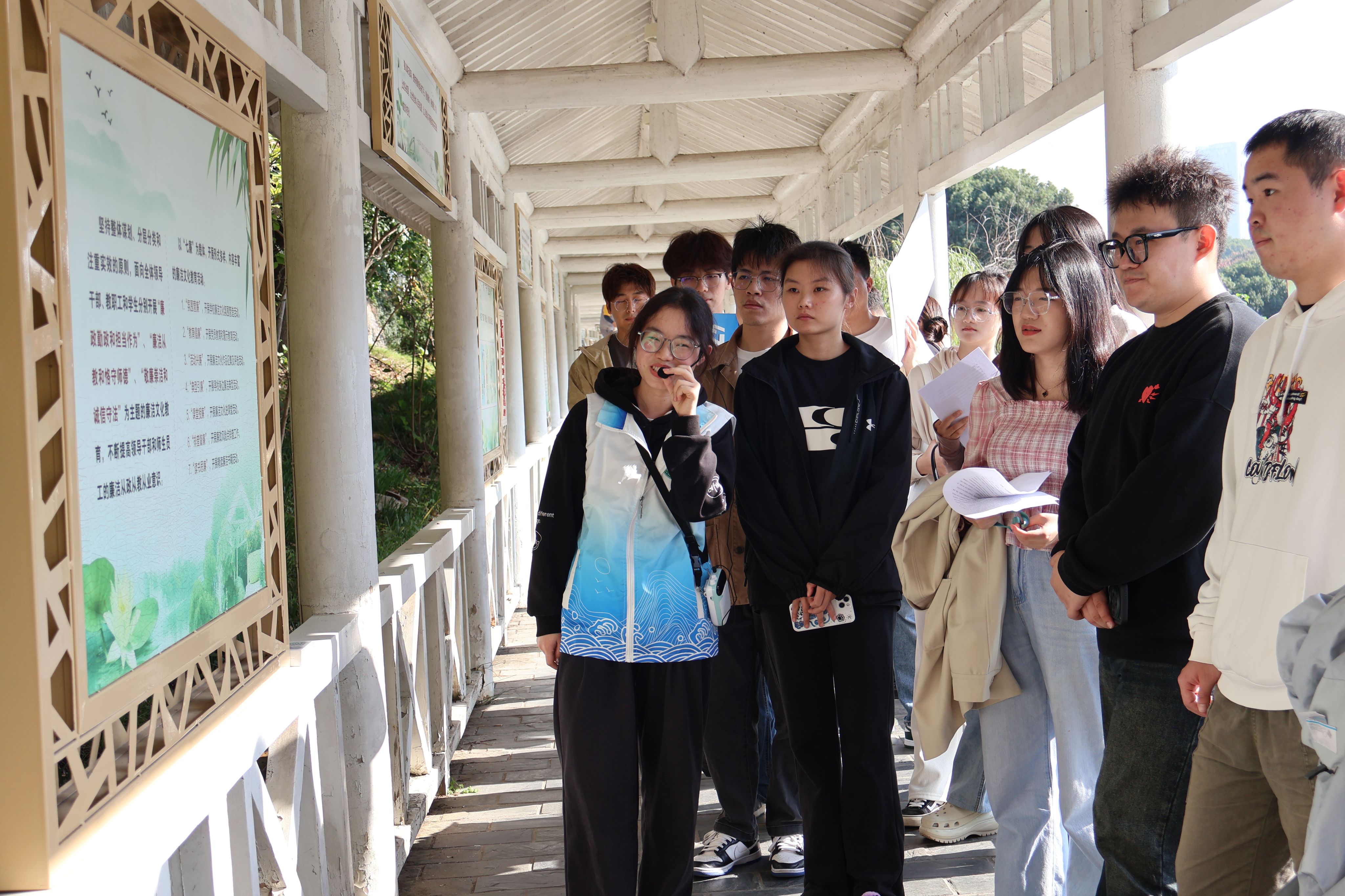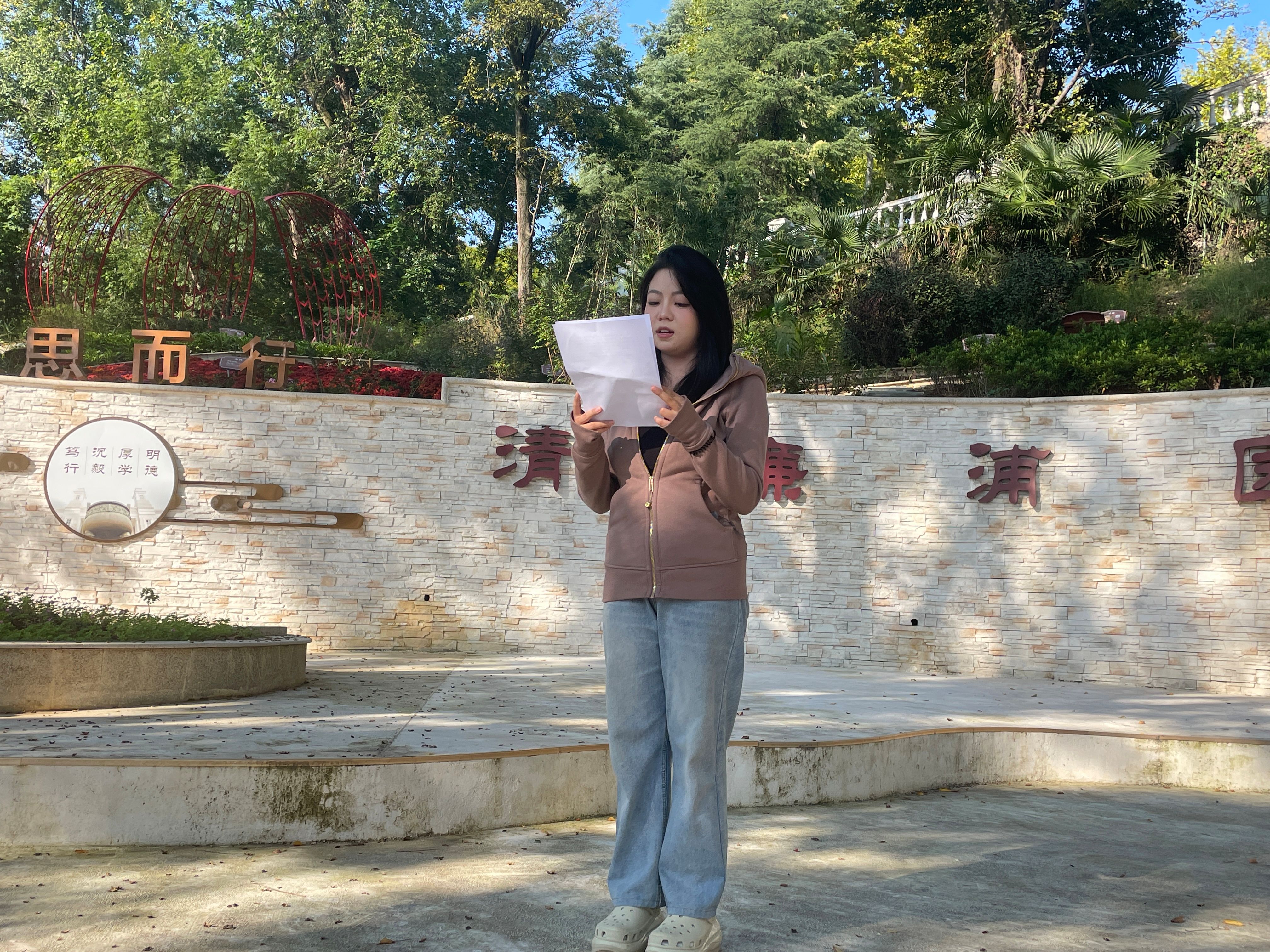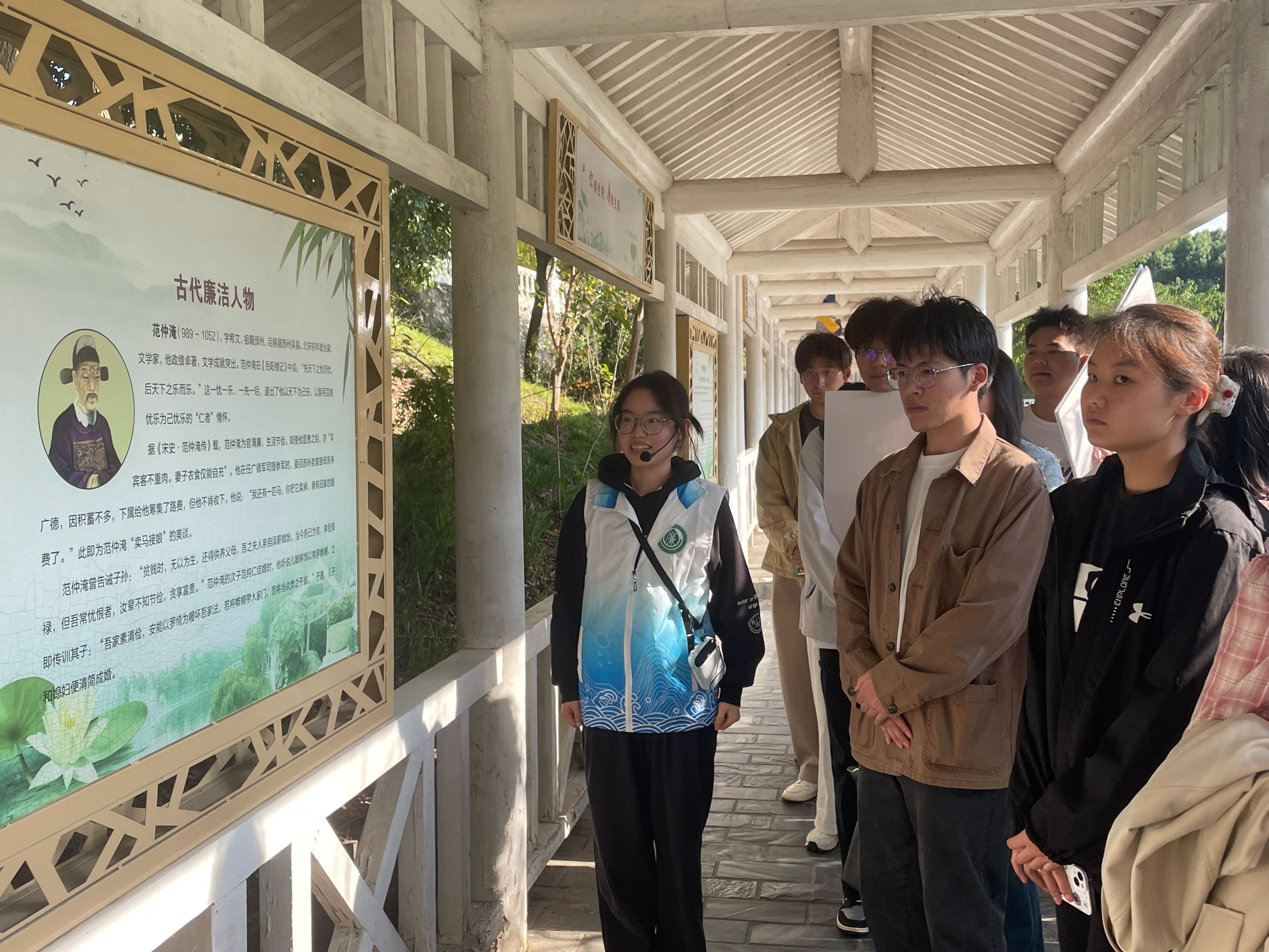 常景丽同学从镜湖廉洁文化长廊的起点为大家讲解。她从长廊的由来、构思和落成娓娓道来;从“知廉”、“尚廉”、“践廉”3个板块循循渐进,以此倡导大家崇尚廉洁,学习廉洁文化,以廉洁人物为榜样,在学习和生活中主动践行廉洁。