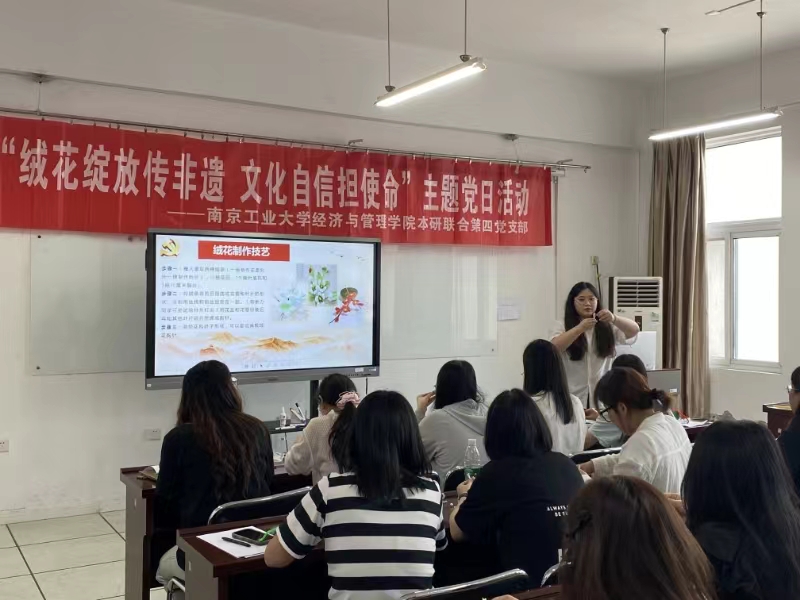 为弘扬中华优秀传统文化,提升党员对非物质文化遗产的认识和保护意识,增强文化自信,6月14日上午,365英国上市公司本研联合第四党支部在博学楼622教室开展“绒花绽放传非遗,文化自信担使命”主题党日活动。