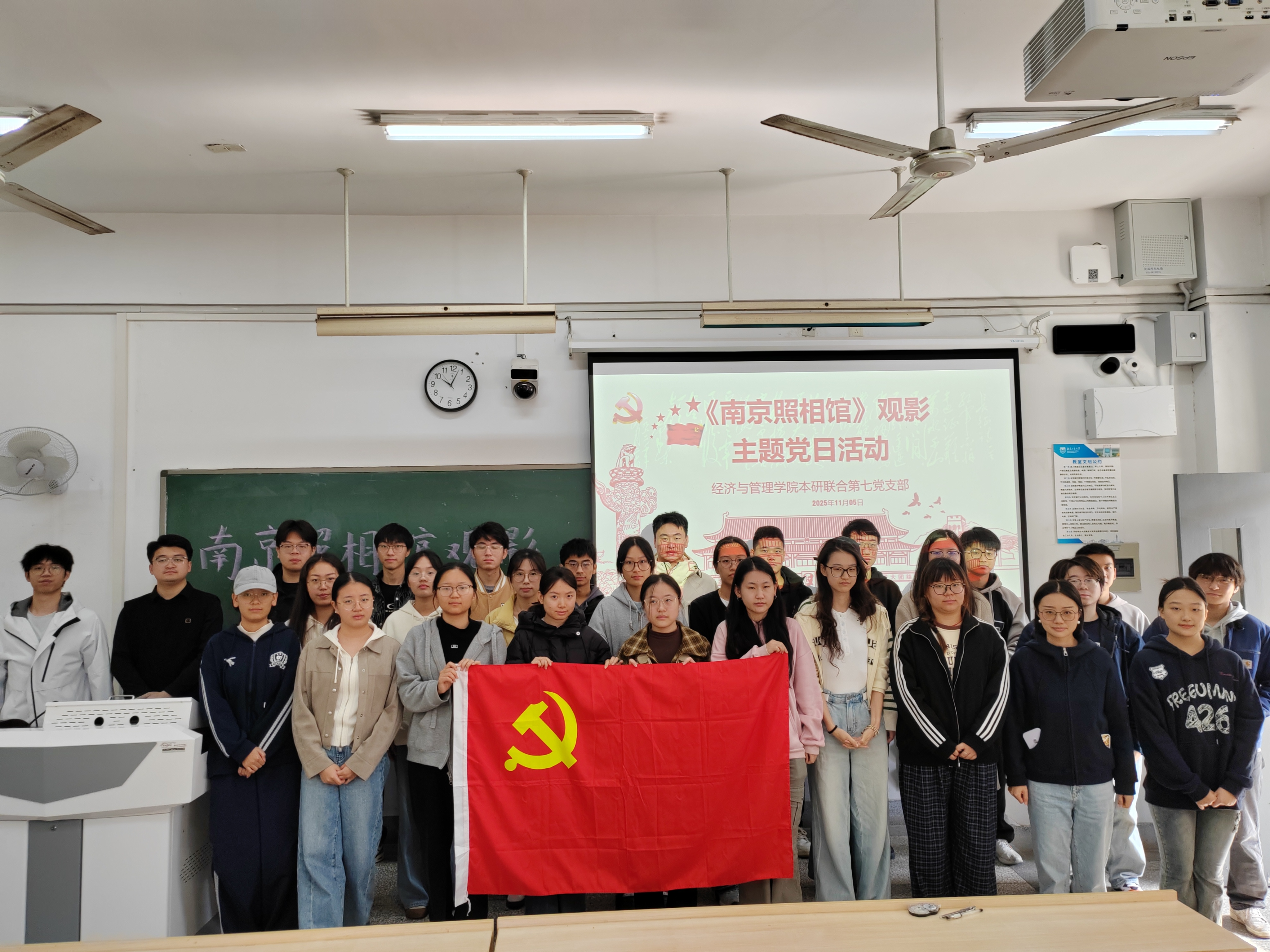为引导青年学子铭记历史,传承红色记忆,筑牢理想信念,11月5日,365英国上市公司本研联合第七党支部组织开展了“铭记历史守初心 光影铸魂担使命”红色观影主题党日活动,集体观看红色教育影片《南京照相馆》,将“光影课堂”变为生动的“大思政课”,让红色基因在沉浸式体验中薪火相传。