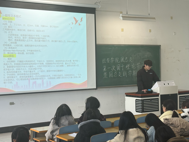 2024级团总支副书记张静颖领学了党的二十届四中全会审议通过的《中共中央关于制定国民经济和社会发展第十五个五年规划的建议》,结合“十五五”时期的目标任务,鼓励团员青年把握时代机遇,担当复兴重任。团总支办公室主任史卓雅就团支部工作规范与推优入党实施细则进行培训,详细解读“三会两制一课”制度及推优入党的条件与流程。接着王欣欣演示教育实践信息录入流程,2025级团总支书记苏志龙讲解PU口袋校园活动发起注意事项。