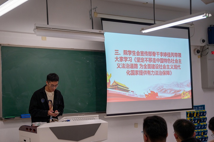 学习会上,院员工会志愿服务部部长颜妍带领大家学习《加强政党合作共谋人民幸福》,明确中国政党一直都在承担责任,不断增强为人民谋幸福的能力,培养群众的爱国之情。综合事务部副部长岳钰茜带领大家学习《习近平论“不忘初心、牢记使命”》,指出中国一直在发展中国特色社会主义先进文化,不断凝聚青年热情,鼓励青年承担起青年使命。宣传部骨干李婷佳芮带领大家学习《坚定不移走中国特色社会主义法治道路为全面建设社会主义现代化国家提供强有力法治保障》,明确依法治国的重要性,督促同学应高效做好员工会工作,不断为组织注入生机。最后,外联部骨干袁婷婷带领大家学习《习近平:在纪念辛亥革命110周年大会上的讲话》,阐述中国共产党为实现中华民族伟大复兴所贡献的力量,警醒各位青年需拼搏奋斗,努力与国家一起蓬勃成长。