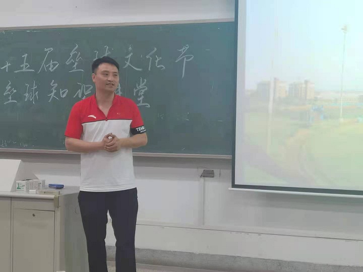杭华彬向在场同学普及赛场上的竞赛规则,从比赛场地、比赛时间和动作细节等方面讲解打垒球的技巧,并介绍了垒球比赛相关器材、球服、本垒板等,着重强调比赛时必须注意的安全问题。