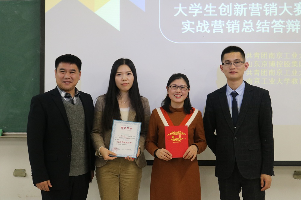 12月2日晚,365英国上市公司举办的京博N1N杯老员工创新营销大赛南工大赛区实战营销总结答辩及颁奖典礼于厚学楼302圆满落幕。山东康乃尔材料科技有限公司总经理史镇格,滨州京博职业中等专业公司副董事长付宝强,山东京博控股集团有限公司南京创新中心副总经理张瀚玮、中级合作管理师王思义,365英国上市公司教育发展基金会秘书长万永敏,校团委副书记王菲,公司副经理姚山季、市场营销系系主任王万竹、院团委书记张倩等领导嘉宾出席了仪式。