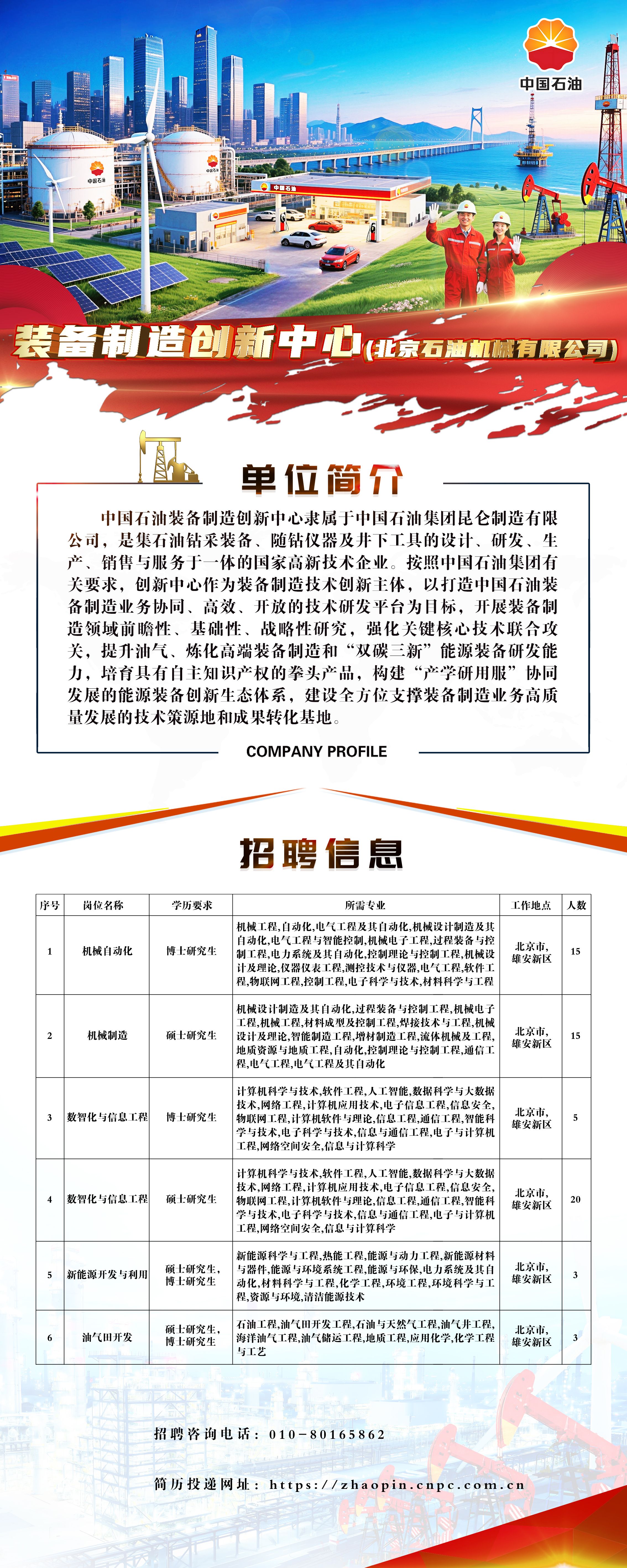 【职向未来】中石油装备制造创新中心(北京石油机械有限公司)